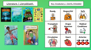 This term, children will explore a variety of writing genres, with a particular focus on narrative writing. They will create their own stories and use their imagination to consider what makes a story engaging and effective. Pupils will also begin to understand explanation writing and create a piece of writing about our topic ‘circulate’. Pupils will continue to develop their Welsh and French reading, writing and oracy skills.